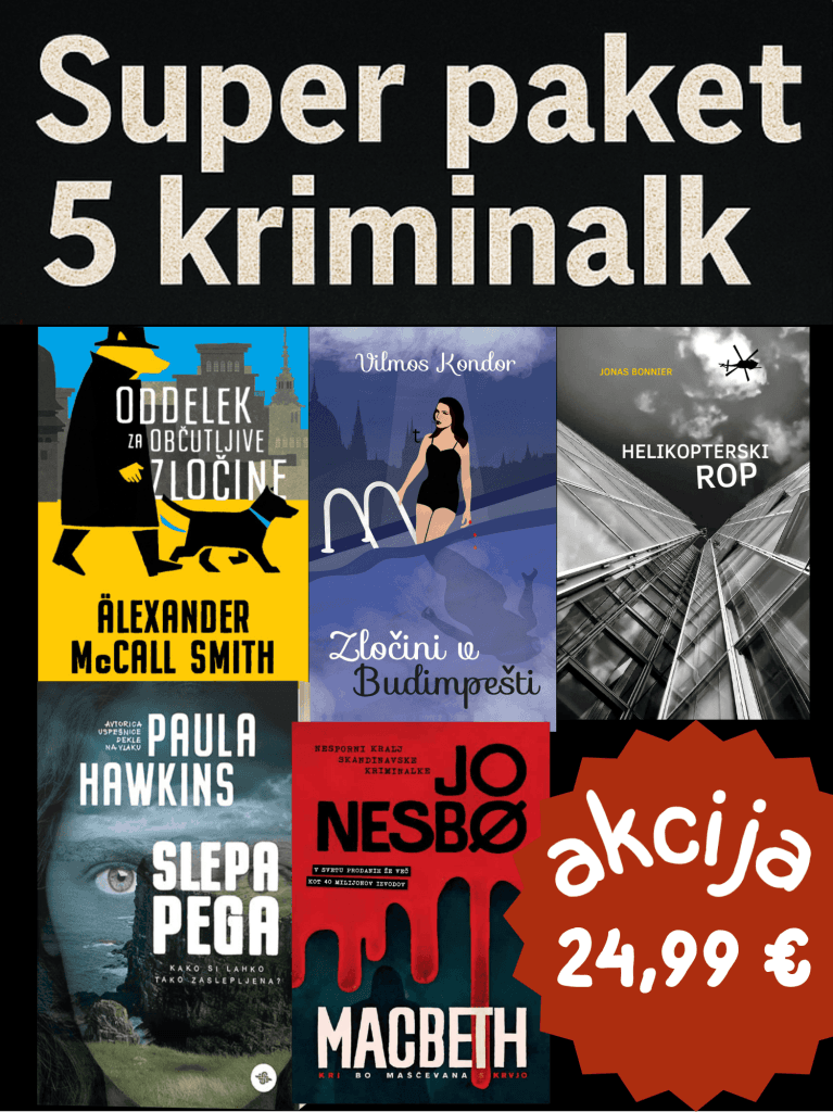 Paket kriminalk po izjemni ceni. Naslovi v kompletu: Oddelek za občutljive zločine, Helikopterski rop, Slepa pega, Zločini v Budimpešti in Macbeth. Izkoristite izjemno ceno paketa! Knjiga je lepo darilo. SUPER PAKET – PET KRIMINALK